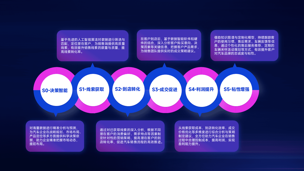 通过拓宽潜在客户来源、、、、优化线索分配并提高到店转化率,,,以增强销售效率。。。。同时,,利用线索数据不断优化分析模型,,有效提升转化率,,,扩大营销影响力。。。。